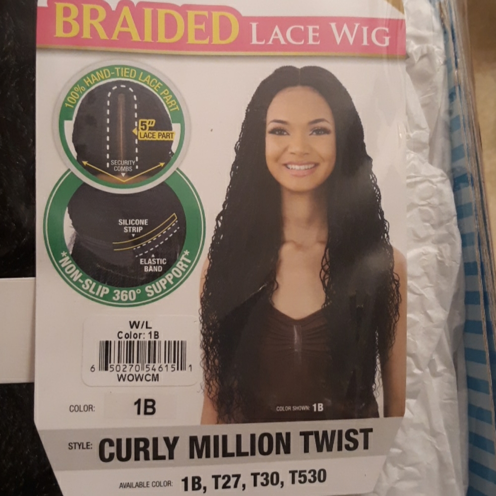 Long lace wig color 1b brand new. Beautiful curly million twist wig.