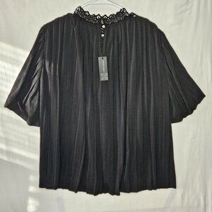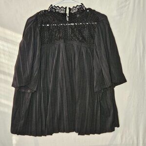 Sad reposh. When I saw this, I thought for sure I had found the black blouse that I would wear to so many occasions. I love the lace chest and the collar. Victorian-ish, but modern at the same time. The sleeves are three-quarter and drape wonderfully, as does the back. It drapes off the shoulders and hides pretty much everything. The fabric has a wonderful weight. I think, however, this is meant for someone that does not need petite cuts and has a smaller bust. The pleated chest was stretched out of its pleats on me, lol. NWT, no flaws. Bundle with another item to make use of my closet discount!