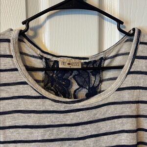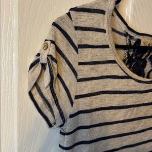 Grey and navy blue stripes with lace strip on the back of the shirt