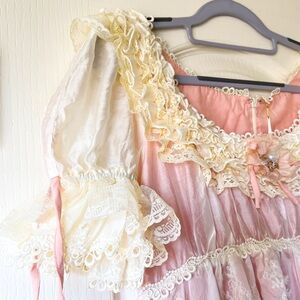 Tags: LaceMade, tea party dress, Rococo style, vintage inspired, cottagecore, romantic lace gown, pink maxi dress, empire waist, Victorian dress, formal occasion wear, bridal shower dress, wedding guest dress, Regencycore, feminine fashion, princess style, elegant vintage