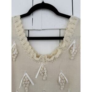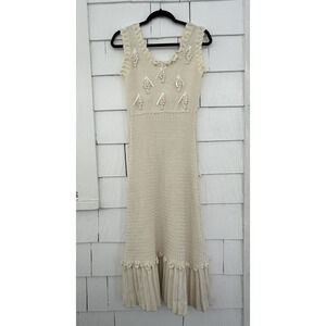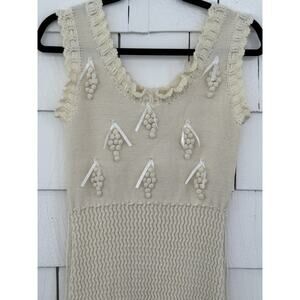 LaceMade Women's Size Large Ivory / Cream Grape Hyacinth Vine Knit Midi Sweater Dress Cottagecore Coquette