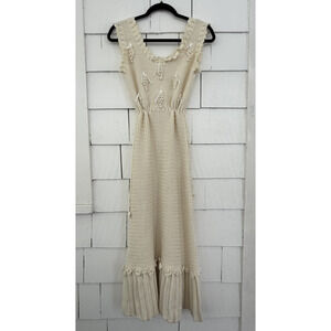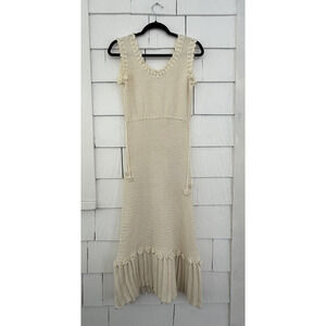 LaceMade Women's L Cream Knit Midi Sweater Dress Ethereal Cottagecore Coquette