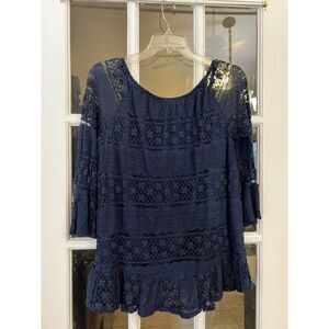 Lace Midnight Blue Witchy Long Sleeve Peasant Cottagecore Top Whimsygoth L.