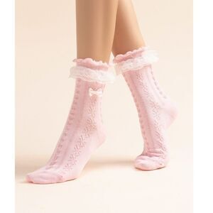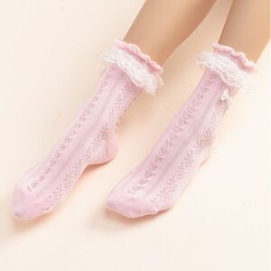 New. Pink socks with bow and lace trim. One pair. 80% cotton. In unopened packaging. *Reasonable* offers only please.