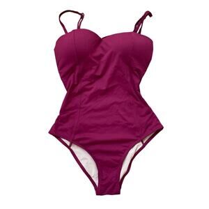 Feel confident and stylish in this flattering lace-up one piece swimsuit in a rich magenta hue. Featuring a structured sweetheart neckline, lightly padded bust, and adjustable lace-up back for a customizable fit. Adjustable shoulder straps provide additional support and comfort, making this suit as functional as it is flattering.