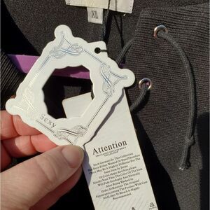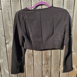 Black long sleeve crop top. It laces up the front. You can pull it all the way closed or leave open some if you like. It is a nice ribbed material.