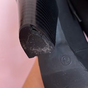 Worn a few times. One of the heels is cracked. In good condition besides that