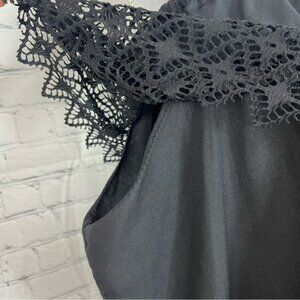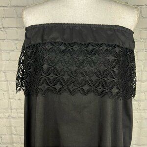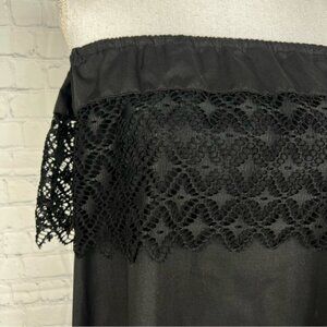Lace-trim Cotton Crochet Off Shoulder Blouse Black