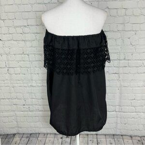 Hand Made in Mexico elasticized off the shoulder neckline blouse. Crocheted overlay Size L/XL