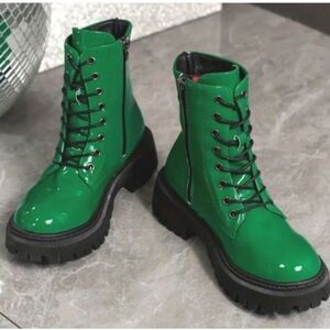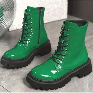 Women's Solid Color Trendy Boots, Lace Up Side Zipper Platform Comfy combat boot Shoes, Versatile Western Round Toe Shoes Beautiful red interior