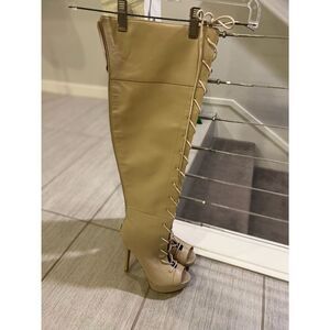 Lace up Thigh High nude zip entry heel boots