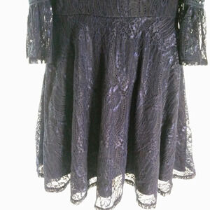 Pretty true Blue lacey cold Shoulder Dress in size 3 mini length. Zippered back, gorgeous lace details, trumpet sleeves. Perfect for a special occasion. Order it today ❤️😊👍.