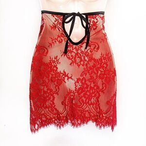 Double Fun Bundle: one cherry red lace chemise with cutout back, lined in black, size large, by Mentionables. New without tags.