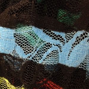 Colorful stripped lace with bleach Lacey stripes. Great bathing suit cover up.