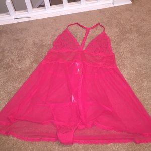 New Victoria's Secret red halter 2 piece! Includes lace halter and matching lace thong. I love this but it is too big. I'm not really sure why it didn't come with tags on the pieces but it is brand new and has never been worn.