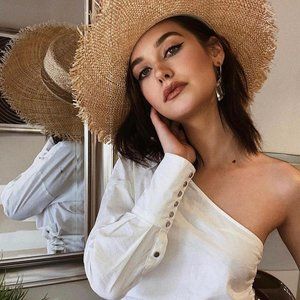 Made for the sunshine. This frayed edge Boater hat is the perfect addition to your pool side look.