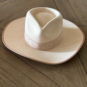Lack of Color Ivory Rancher Special size small. New with tags. Inspired by you (and vintage men’s styles), this hat is designed to make a total chic statement this season. This Ivory Rancher fedora takes our breath away with how stunning you look in it. Featuring a stiffened wool fedora with a rigid crown design, and trimmed with a tonal grosgrain ribbon. 100% soft Australian wool. • Brim measures 10 cm / 3.95” • Small: 55cm
