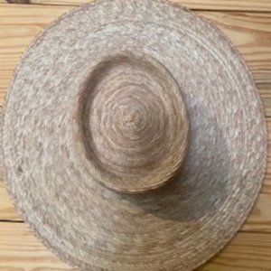 Natural 100% palm leaf wide-brimmed dipped crown boater hat.