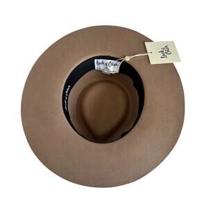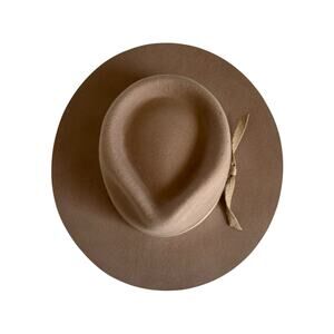 Features: Lack of Color Zulu Tan Brown Australian Wool Wide Brim Fedora Hat; this hat is composed of wool fabric that shapes a fedora silhouette with a high crown, a teardrop top, and a wide brim.