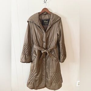 Lacompel by Andrea Landi long hooded puffer coat jacket brown