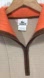 Keywords: Lacoste, sweater, pullover, knit, quarter zip, beige, brown, orange, ribbed, trim, elbow patch, preppy, retro, classic, size 4
