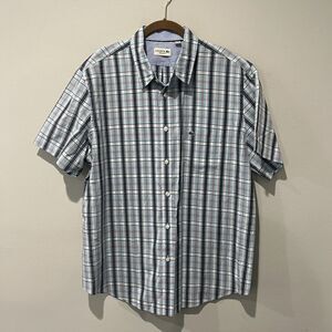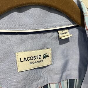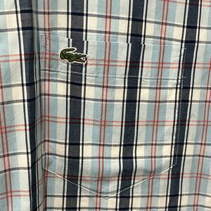 Lacoste Alligator Button Up Shirt Men’s 45 2XL Blue Plaid Short Sleeve Preppy