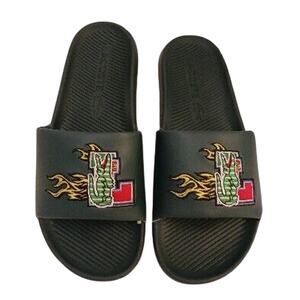 Lacoste Slides Flame Fire Alligator Mens Size 12 Sandals Green Avante Garde Rare Comfort Designer Fancy yet Traditional easy-going Coastal Nautical shoes