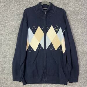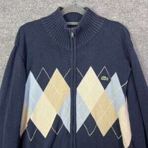 Lacoste Argyle Blue Sweater Knit Full Zip Men's Size 6
