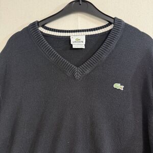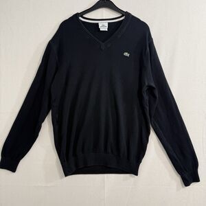 Lacoste Black V Neck Long Sleeve Knit Cotton Stretch Sweater Size 4 Small