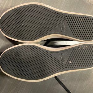 Stylish Lacoste sneakers. Black leather upper. White sole. Comfortable and versatile.