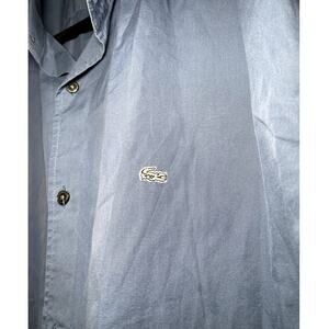 Elevate your wardrobe with this stylish blue button-down dress shirt from Lacoste. Crafted from 100% cotton, this size 43 shirt features a tailored fit for a modern and comfortable silhouette. Perfect for both casual and formal occasions, this shirt is a versatile addition to any man's closet. Grab it now and experience the timeless elegance of Lacoste!