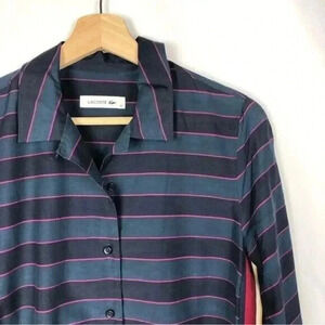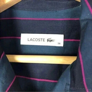 Lacoste Blue & Pink Stripe Accent Ribbon Long Sleeve Button Down 36/XS