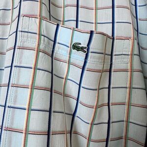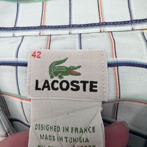 Stylish Lacoste shirt with a blue and white checkered pattern. Perfect for casual wear. Features a classic button-down design.
