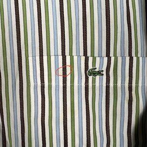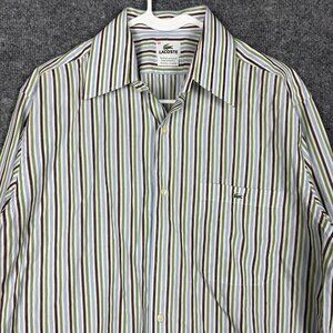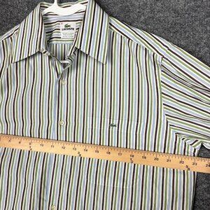 Lacoste Button Down Shirt Mens 42 Long Sleeve Plaid Alligator Stripe