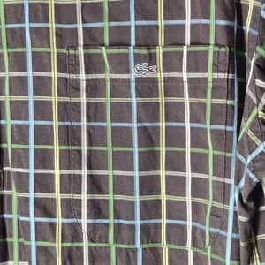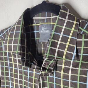 Lacoste Button Up Plaid Short Sleeve Shirt Large 42 Brown Golf Gorpcore