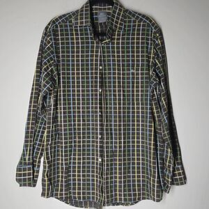 This Lacoste button-up shirt is a must-have for any fashion-forward man. The plaid pattern, long sleeves, and collared neckline make it a versatile piece for any occasion. The shirt is made of comfortable cotton material and features an embroidered button closure for a classic touch.