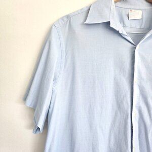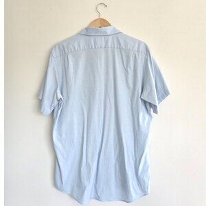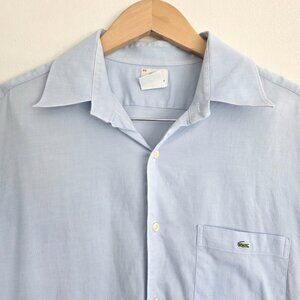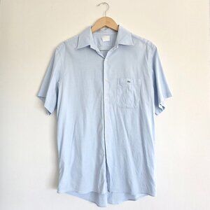 Lacoste Chambray Blue Oxford Cotton Woven Button Down Short Sleeve Shirt