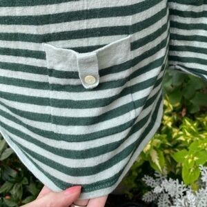 Classic green striped sweater from Lacoste. Two front pockets with buttons. Logo on the chest.