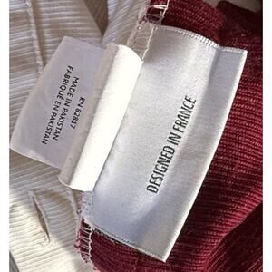 Made of micro-ribbed heavier weight cotton. Ivory button closure. Side ties.