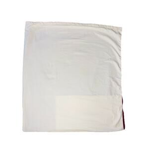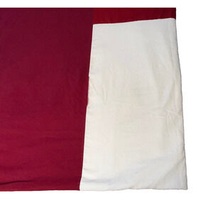 One side of the duvet cover is red and maroon and white color-block. The reverse side of the duvet cover is solid white thin maroon trimming along the edge.