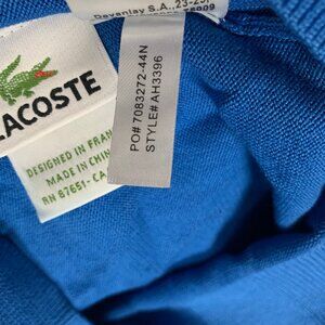 Lacoste Garment Dyed Blue V-Neck Sweater Men's size 6 XL