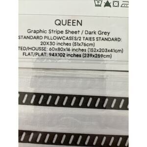 Lacoste Graphic Stripe Gray White 4pc QUEEN Sheet Set 109% Cotton Dark Grey Logo