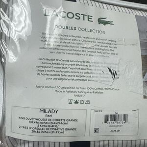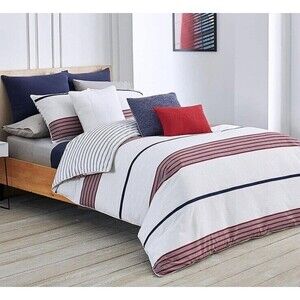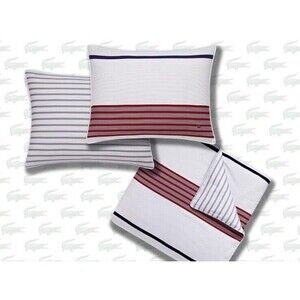 Reimagine your bedroom with the classic texture and pattern of the Lacoste Milady Red Bedding Collection. A printed ottoman rib instantly refreshes the iconic look of this cotton bedding, which reverses to a classic red-and-grey stripe. Corded piping frames the bedding for signature style, whichever side you choose.
