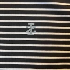 Lacoste Izod men’s size medium black and white striped golf polo shirt. In excellent condition from a smoke free home. Shirt is like new. Neck tag is cracked.