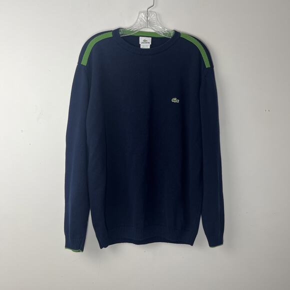 Lacoste Knit Cotton Sweater Mens 7 XL Navy Green Stripe Logo Pullover Jumper