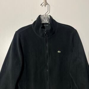 Lacoste Logo Fleece Full Zip Up Collared Black Swacket Womans Size Small
