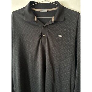 Lacoste Long Sleeve Black Diamond Pattern Polo Crocodile 5191L | Men’s 5 (Large)