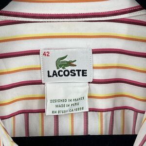 Lacoste Long Sleeve Striped Yellow Red White Collared Button-Up Shirt Size 42