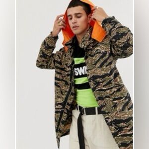 Lacoste L!ve Unisex Camo Hooded Longline Jacket XL