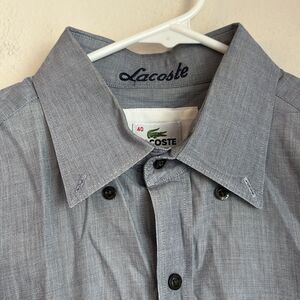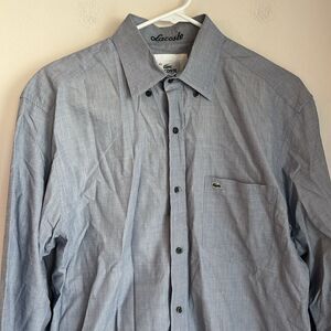 Lacoste Men Blue gray neutral preppy work casual cotton button down Shirt 40/LG